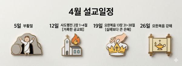 다음글 목록 페이지 정보 가온교회 작성일2026-04-11 10:48:25 조회24회 댓글0건 기간20260411-20260430 관련링크 26년 4월 설교일정 본문 요한복음 강해 댓글목록 등록된 댓글이 없습니다. 다음글 목록