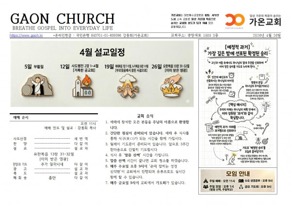다음글 목록 페이지 정보 가온교회 작성일2026-04-28 09:22:48 조회10회 댓글0건 관련링크 26년 4월 26일 교회소식 본문 요한복음 강해 댓글목록 등록된 댓글이 없습니다. 다음글 목록