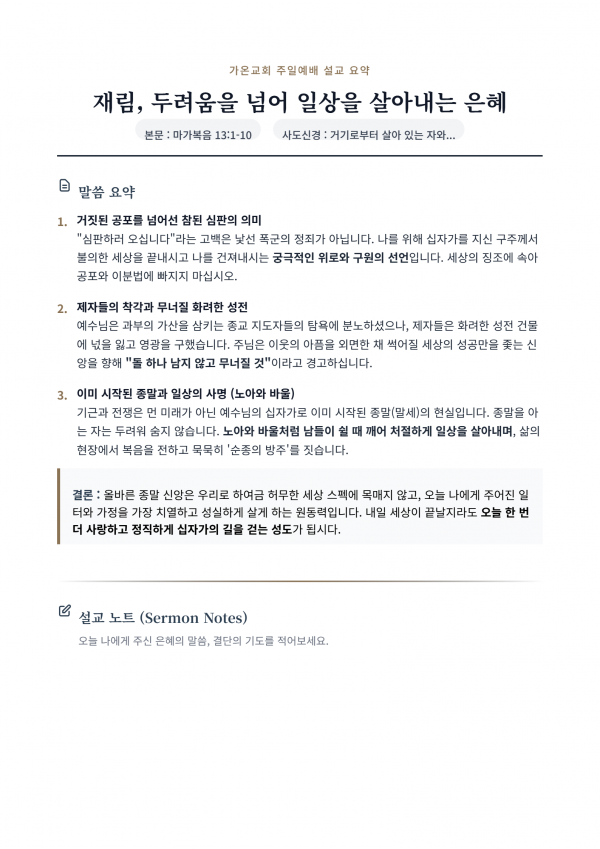 이전글 다음글 목록 페이지 정보 가온교회 작성일2026-03-14 19:18:18 조회38회 댓글0건 관련링크 26년 3월 15일 교회소식 본문 사도신경 강해 댓글목록 등록된 댓글이 없습니다. 이전글 다음글 목록